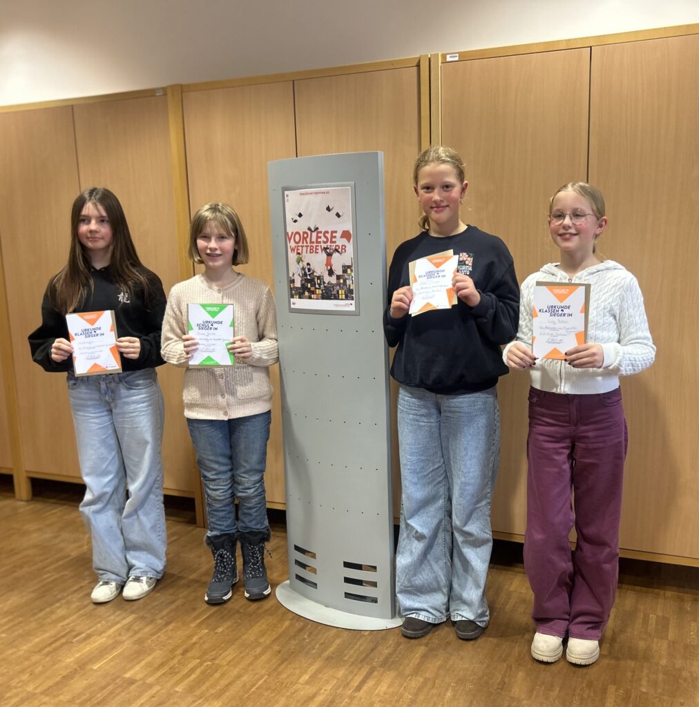 Am diesjährigen Vorlesewettbewerb der 6-ten Klassen traten die vier Klassensiegerinnen,
