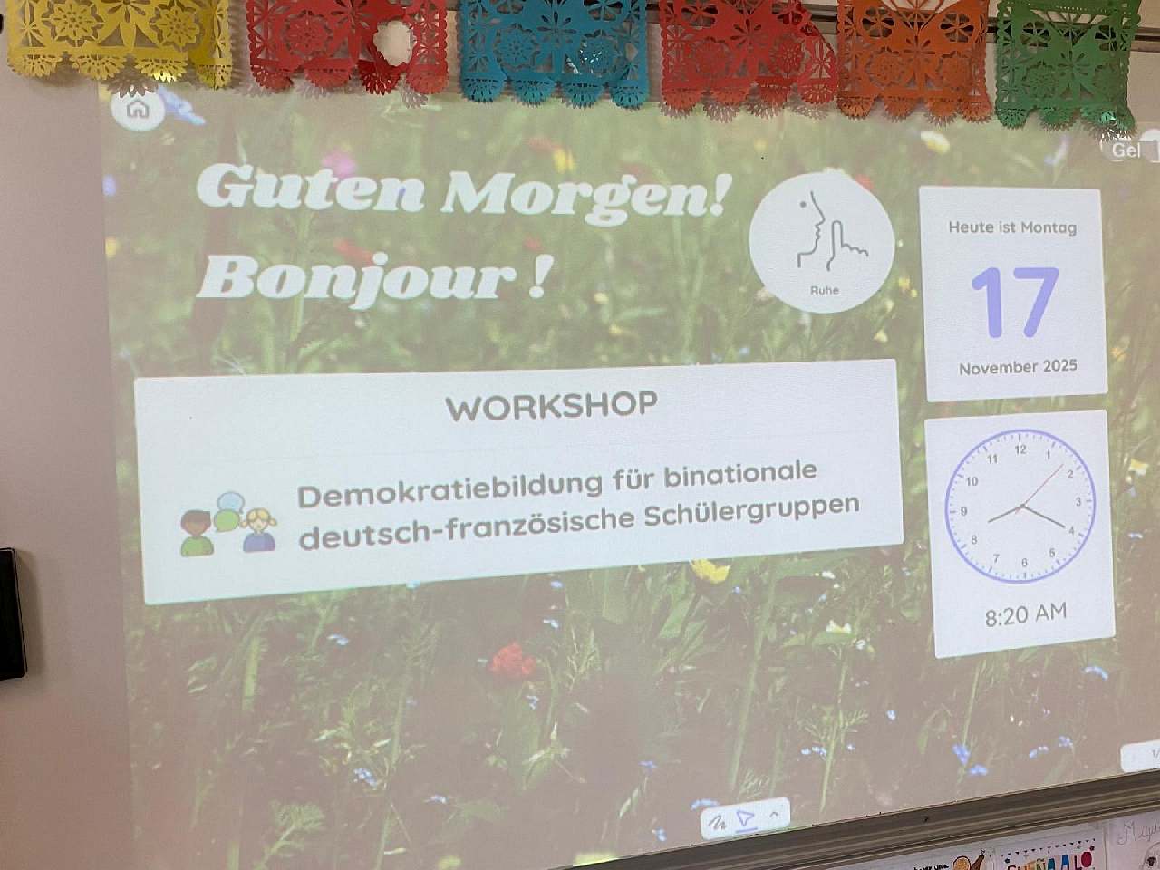 Am Dienstag sind wir wieder zur Schule der Franzosen gefahren. Wir haben direkt am Anfang der Stunde unser Podcast angefangen wo wir über die Demokratische Lage in der Schule und wo Demokratie in der Schule benötigt wird gesprochen haben. Nach dem Vorbereiten haben wir unseren Podcast vorgestellt. Danach war Schulende und wir haben mit Actionbound weiter gemacht.
