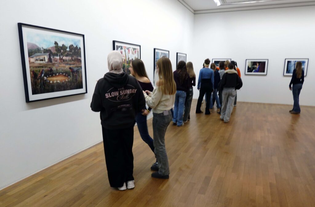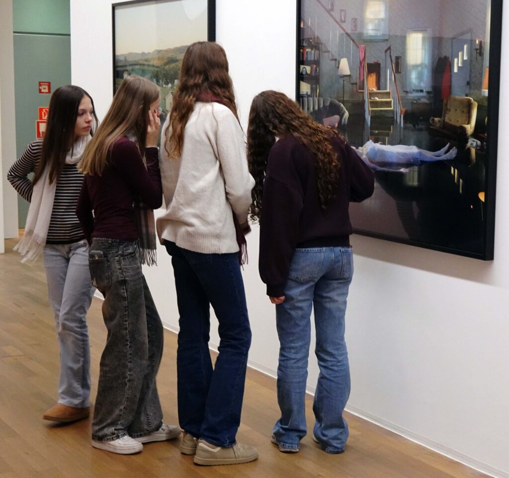 Am 28.11.2025 unternahm der Mediengestaltungskurs der Klasse 9 in Begleitung des Kurslehrers Herrn Meier eine Exkursion ins Kunstmuseum Bonn. Im Mittelpunkt stand die Ausstellung der fotografischen Werke von Gregory Crewdson. Im Museum konnten wir uns unter anderem Crewdsons Bilderserie „Twilight“ oder die Bilderserie „Beneath the Roses“ im Original ansehen und waren besonders beeindruckt von den großformatigen, filmisch wirkenden Bildern, die eine geheimnisvolle Atmosphäre erzeugen. Während der Führung erfuhren wir, wie aufwendig Crewdson seine Szenen mit Licht, Requisiten und ganzen filmset-ähnlichen Aufbauten gestaltet.